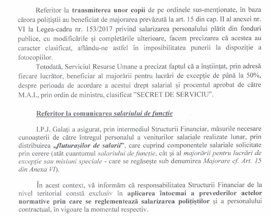 Conform informațiilor din imagine, se spune că „responsabilitatea structurii financiare de pe plan teritorial constă exclusiv în aplicarea riguroasă a legilor care reglementează salarizarea polițiștilor”. Această situație devine deja tragicomică.