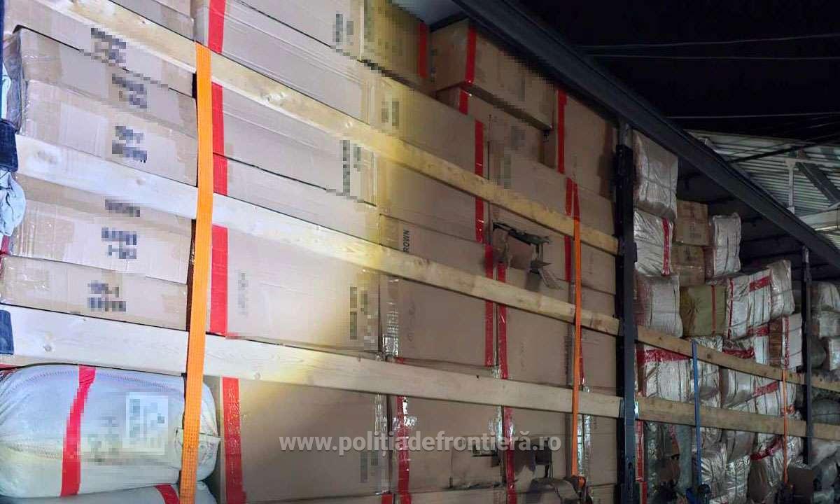 În timpul inspecției vehiculului la punctul de frontieră, polițiștii au găsit mai multe cutii conținând încălțăminte în semiremorcă.