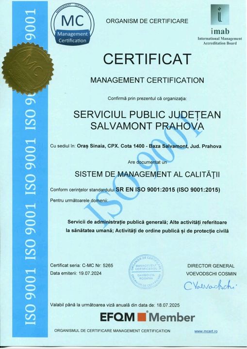 Excelența în salvare montană: Salvamont Prahova primește Certificare ISO 9001:2015