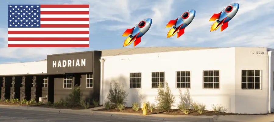 Fabrica actuală a Hadrian — o instalație de 100.000 de metri pătrați în Torrance, California, unde compania s-a mutat după ce a crescut din prima sa fabrică din Hawthorne, California — are capacitatea necesară pentru a produce volumele de componente așteptate pentru comenzile din acest an. O nouă fabrică „de aproximativ două până la trei ori mai mare” decât linia de producție din Torrance urmează să fie lansată în al patrulea trimestru din 2025, având o locație care va fi decisă până la sfârșitul lunii martie, a spus Power.
