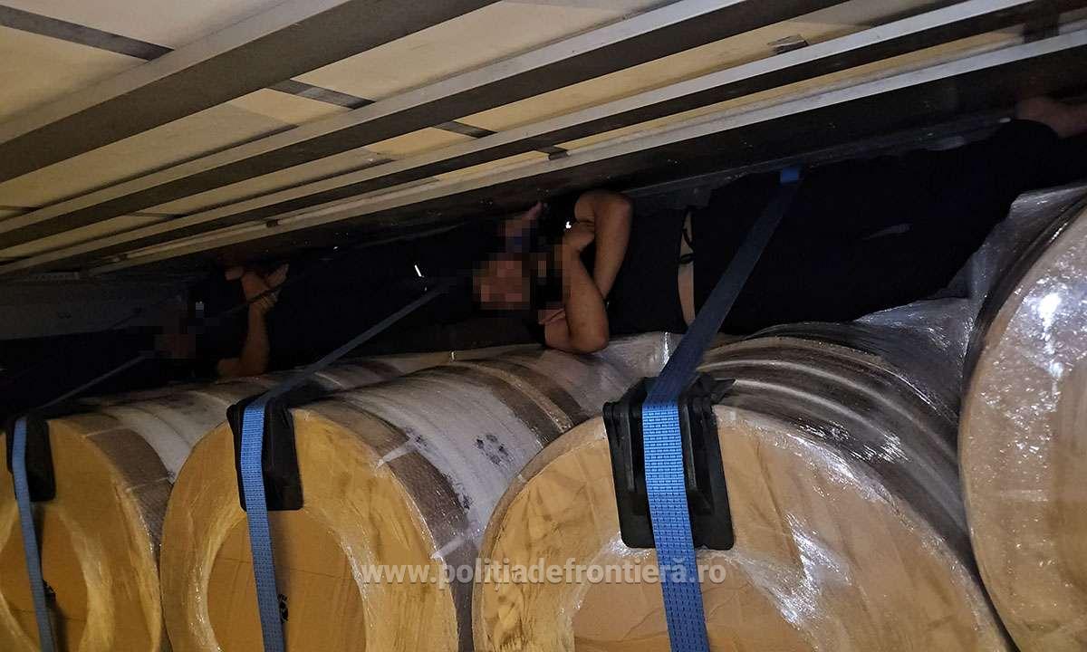 Polițiștii de frontieră din cadrul Punctului de Trecere a Frontierei Giurgiu-Ruse au depistat, în urma unui control amănunțit, trei cetățeni irakieni ascunși printre rulouri cu etichete, într-un autocamion condus de un cetățean turc.