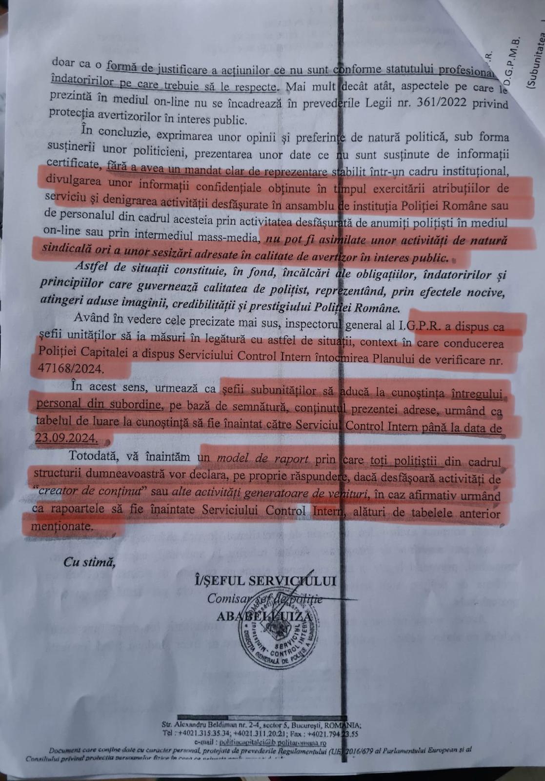 De asemenea, sindicaliștii fac apel la polițiști să nu completeze aceste rapoarte, subliniind că nu există o obligație legală care să le impună acest lucru. Anexa 10 a Ordinului MAI 140/2016 se referă doar la situațiile în care polițiștii au relații cu angajatori, iar măsurile de acest tip par să depășească cadrul legal stabilit.