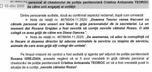 Vârful degradării umane este atins atunci când o angajată a fost obligată să curețe excrementele prețiosului Rosso. Este imaginea perfectă a sistemului de la Jilava: în timp ce liderii sindicali se bat cu pumnul în piept pentru drepturile angajaților, în realitate, polițiștii sunt transformați în servitori umili, obligați să strângă mizeria lăsată în urmă de câinele „șefei”. Este un atac frontal la demnitatea umană, menținut printr-un regim de teroare funcțională.
