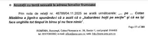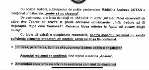 Mai grav, raportul scoate la iveală aspecte de o toxicitate extremă: hărțuirea cu tentă sexuală. Personalul feminin care nu intră în grațiile conducerii devine ținta unor aluzii și comportamente nepotrivite, transformând instituția statului într-o zonă gri, unde profesionalismul moare sufocat de mizerii interpersonale. „Unitatea angajaților”, invocată ipocrit în antetele documentelor sindicale, este doar un paravan pentru un sistem de pile și hărțuire unde polițistul de rând este strivit fără milă.