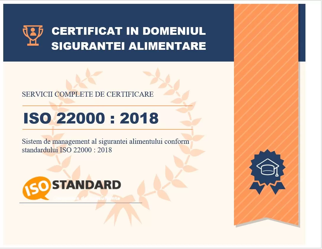 Standardul ISO 22000 definește cerințele pentru un sistem de management al siguranței alimentelor, oferind un cadru care integrează diferitele etape ale lanțului de aprovizionare, de la producție și procesare până la distribuție și consum. Acest standard este relevant deoarece asigură nu doar siguranța alimentelor, dar și transparența și responsabilitatea în cadrul organizațiilor care operează în acest sector. Prin implementarea ISO 22000, organizațiile demonstrează angajamentul lor față de siguranța alimentară și calitatea produselor, ceea ce poate contribui la consolidarea încrederii consumatorilor și la îmbunătățirea imaginii de brand.