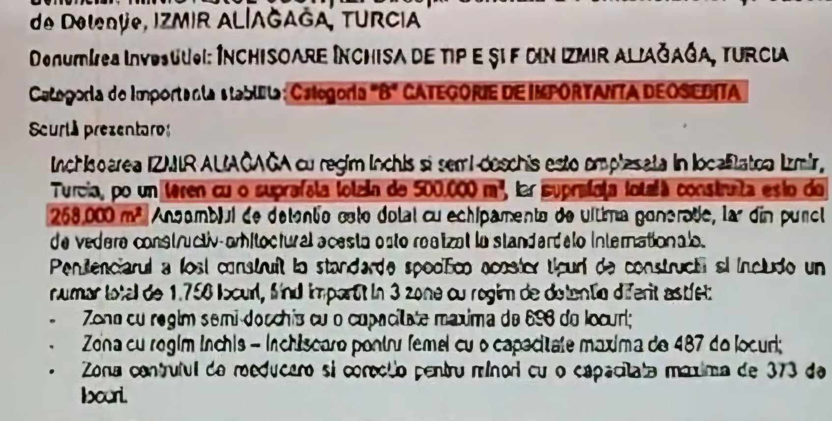 Construcția Penitenciarului Berceni este sub atenția procurorilor europeni! Laura Codruța Kovesi îndreaptă atenția asupra firmelor care au încercat să obțină fraudulos contracte de milioane de euro. În realizarea acestui proiect sunt implicate două societăți: NESS PROJECT EUROPA SRL, în colaborare cu o firmă turcă, ACER PROJE INSAAT SANAYI. Există suspiciuni că firma turcă ar fi încercat să fraudeze licitația prin furnizarea de informații false în documentele necesare. Concret, s-ar fi menționat o „experiență similară”, sugerând că ar fi construit un penitenciar în Turcia între 2018 și 2022, ceea ce este complet fals. Informațiile de pe site-ul Ministerului Justiției din Turcia confirmă că un alt penitenciar a fost construit în acel loc între 2009 și 2011 de o altă companie.