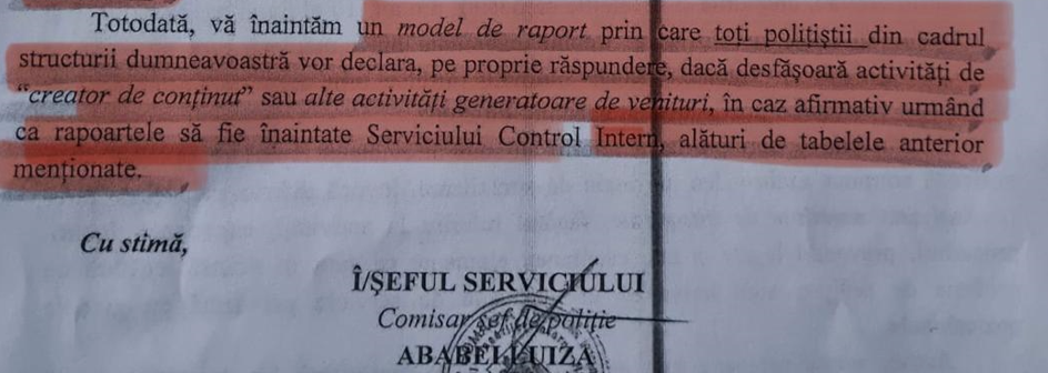 Un recent ordin emis de Dăscălescu, așa cum ne dezvăluie Emil Pașcut de la Sindicatul Diamantul, instigă la o intruziune brutală în viața personală a polițiștilor din IPJ Neamț. Adresa obținută, care poate fi apreciată ca șocantă, cere șefilor de compartimente să spioneze angajații sub pretextul identificării activităților extraprofesionale în orice domeniu.