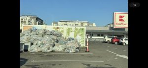 • Dar iată ce se întâmplă ieri la Kaufland Nord. Mormane de deșeuri din plastic depozitate ilegal. Nu mai există în Prahova nici Garda de Mediu sau Poliția Locală care să amendeze astfel de fapte? Normal că nu, deoarece, parcă Recop se ocupă de preluarea pentru Returo (aici)? Kaufland Nord este pasibil de amendă de depozitare deșeurilor, din cauza colectorului, dar Recop are protecția „divina” până și de la „Tripleta Malefică” (aici). (Cristina T.).
