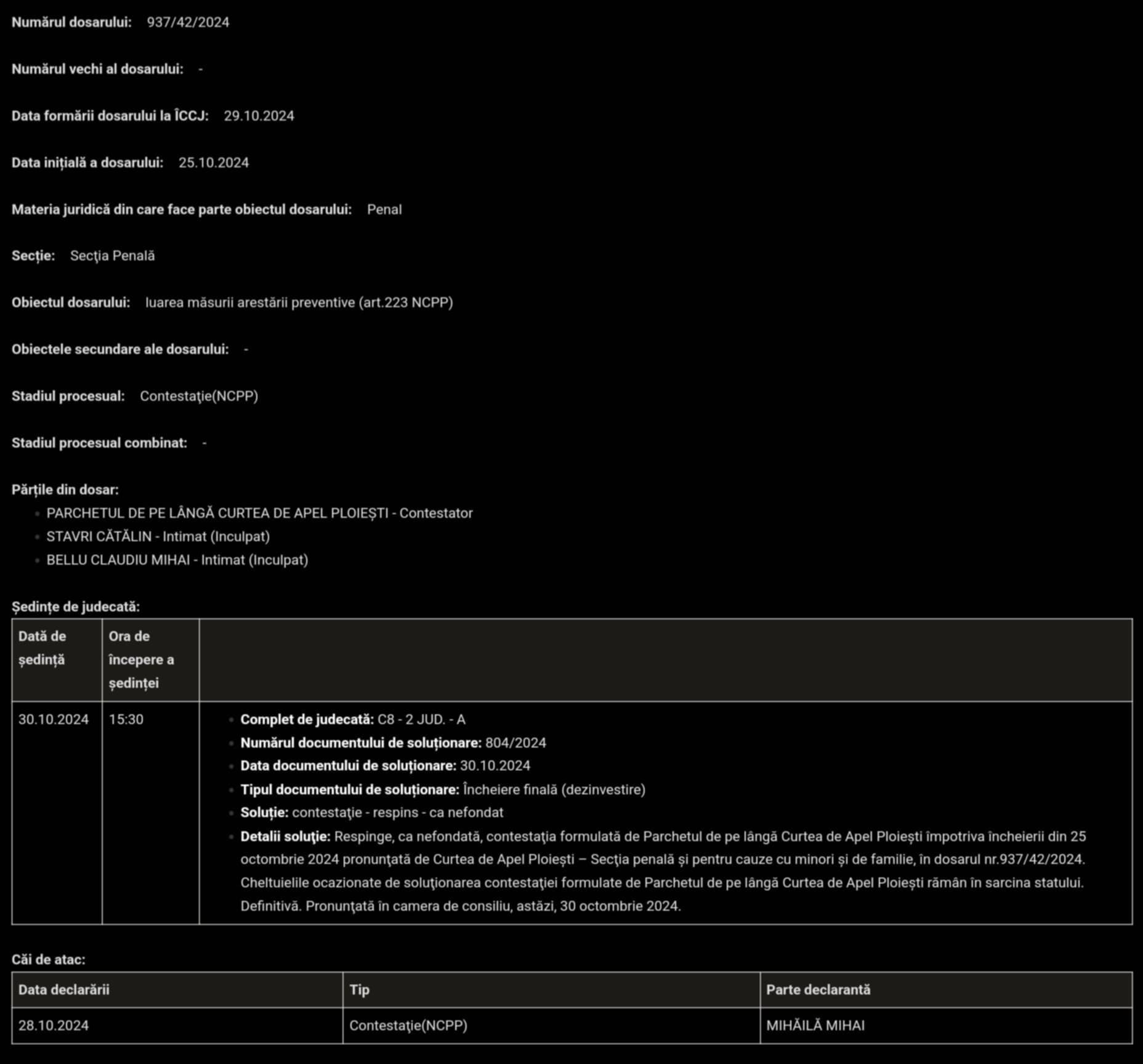 Ieri, Înalta Curte de Casație și Justiție (ICCJ) a menținut decizia Curții de Apel Ploiești și a respins solicitările privind măsurile de arestare pentru inculpații Cătălin Stavri, pseudo-jurnalist șantajist și narcoman, și Claudiu Belu, inculpat interlop. Nu ne-am permis să comentăm decizia unei instanțe niciodată și nu o vom face niciodată. Probabil instanța a considerat că faptele s-au petrecut în anii 2020-2021 și că nu se impune reținerea, chiar daca ziarul nostru dezvaluie aceste fapte penale din anii 2020!