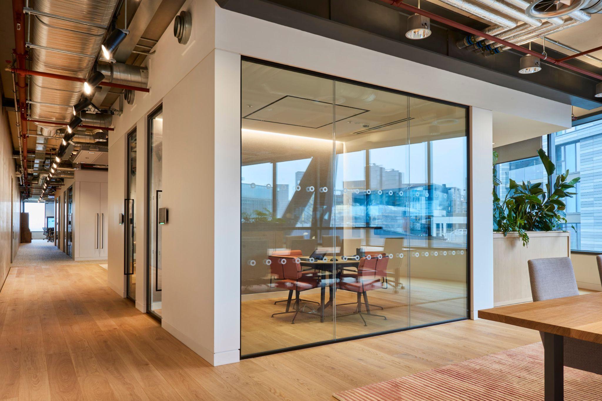 - Izolare fonică moderată: Panourile din sticlă securizată asigură intimitate fonică, reducând zgomotele ambientale din exteriorul spațiului compartimentat.