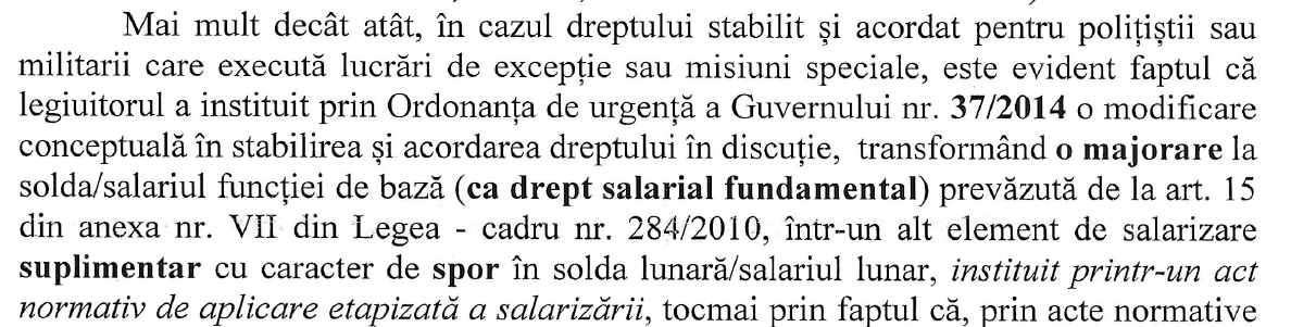 De asemenea, hotărârea pronunțată de Înalta Curte de Casație și Justiție în anul 2021 a evidențiat clar separarea dintre „majorare” și „spor salarial”, validând argumentul că majorarea salariului de bază este parte componentă a acestuia, nu un element distinct. De asemenea, corespondențe recente cu Ministerul Muncii confirmă că, până în ianuarie 2024, DGF a continuat să sostină o abordare greșită în privința acestor drepturi salariale, fiind nevoită să solicite aprobări pentru a continua interpretările defectuoase.