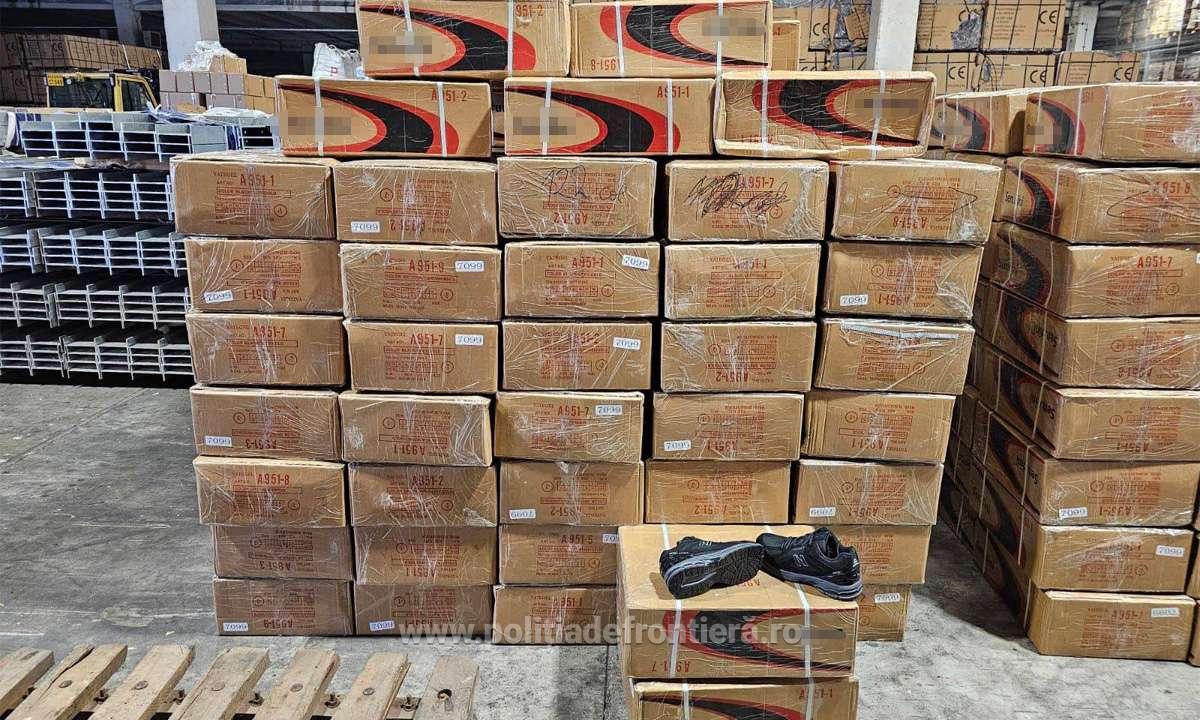 Polițiștii de frontieră din cadrul Gărzii de Coastă au descoperit în Portul Constanța Sud 9.352 perechi de încălțăminte sport, în valoare de aproximativ 1.000.000 de euro, care sunt susceptibile a aduce atingere drepturilor de proprietate intelectuală ale unor mărci cunoscute.