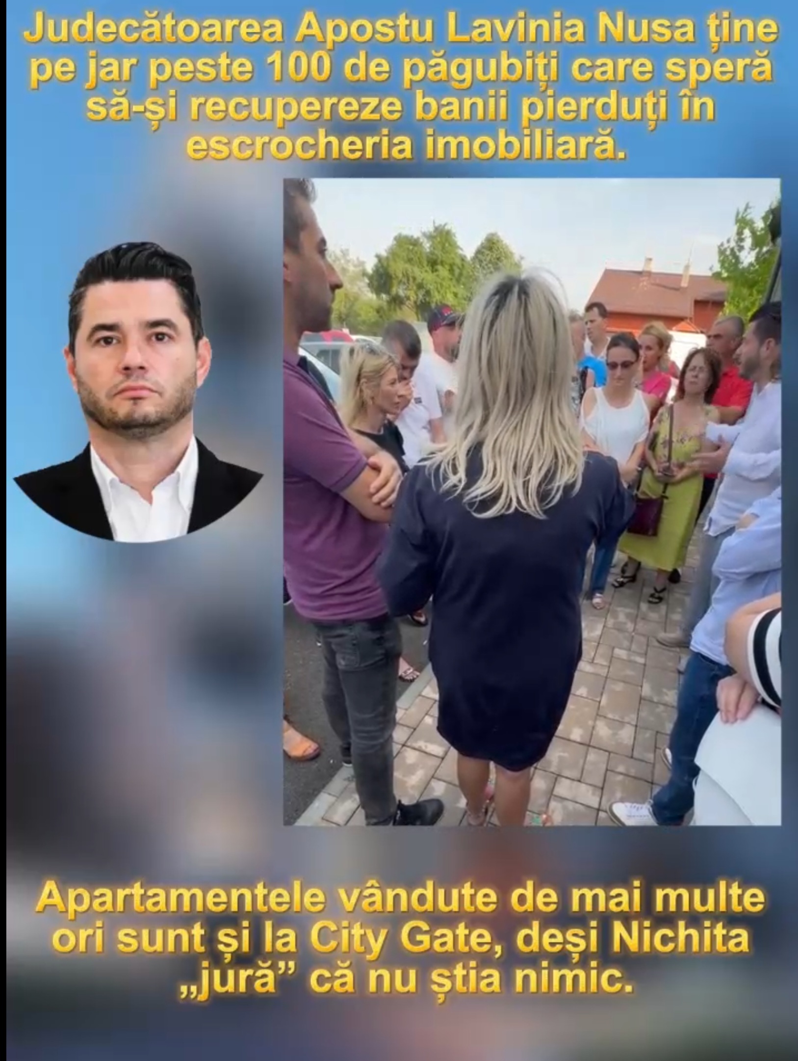 Recent, au apărut informații de ultim moment referitoare la Dosarul 727 / 42 / 2024, în care Vlad Nichita, parte din Baroul Prahova, este implicat în mega-escrocheria imobiliară White Tower și City Gate. De-a lungul anilor, el a acumulat o avere considerabilă, în valoare de câteva milioane de euro. În acest dosar se analizează contestarea ridicării sechestrului asigurator. Judecătoarea de drepturi și libertăți, Apostu Lavinia Nusa, a amânat repetat decizia, stabilind un nou termen pentru 16.01.2025, astfel încât peste 100 de păgubiți așteaptă cu anxietate hotărârea care se află în mâinile acestei judecătoare. Aceasta reprezintă ultima lor speranță de a recupera pagubele cauzate de grupul infracțional.