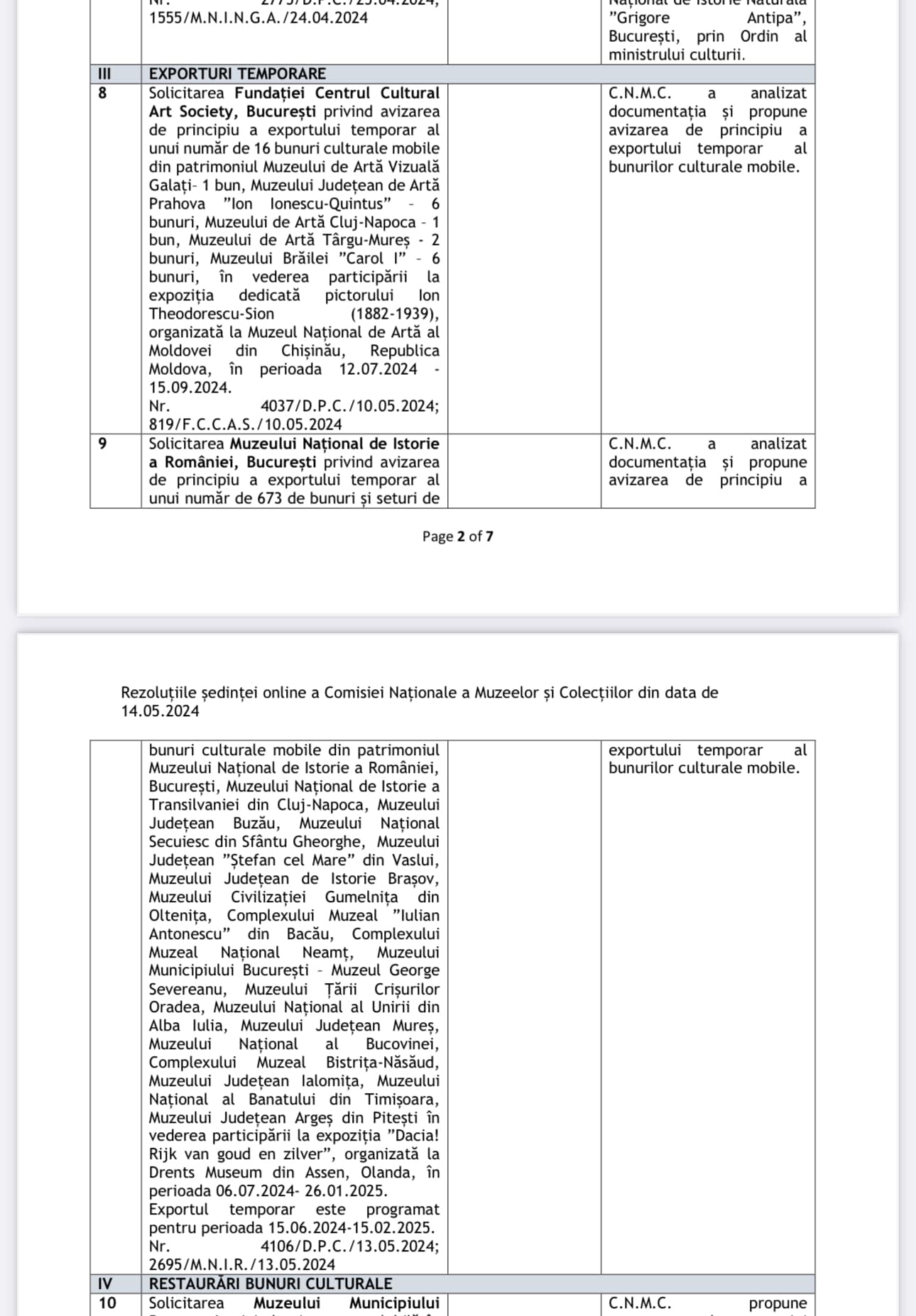 Gavrilescu a criticat modul în care C.N.M.C. a abordat solicitarea Muzeului Național de Istorie a României din București privind exportul temporar al 673 de bunuri culturale mobile. Conform afirmațiilor sale, acest subiect a fost inclus pe ordinea de zi a unei ședințe online din 14 mai 2024, la punctul 9 dintre cele 30 de puncte, fără a beneficia de atenția cuvenită.