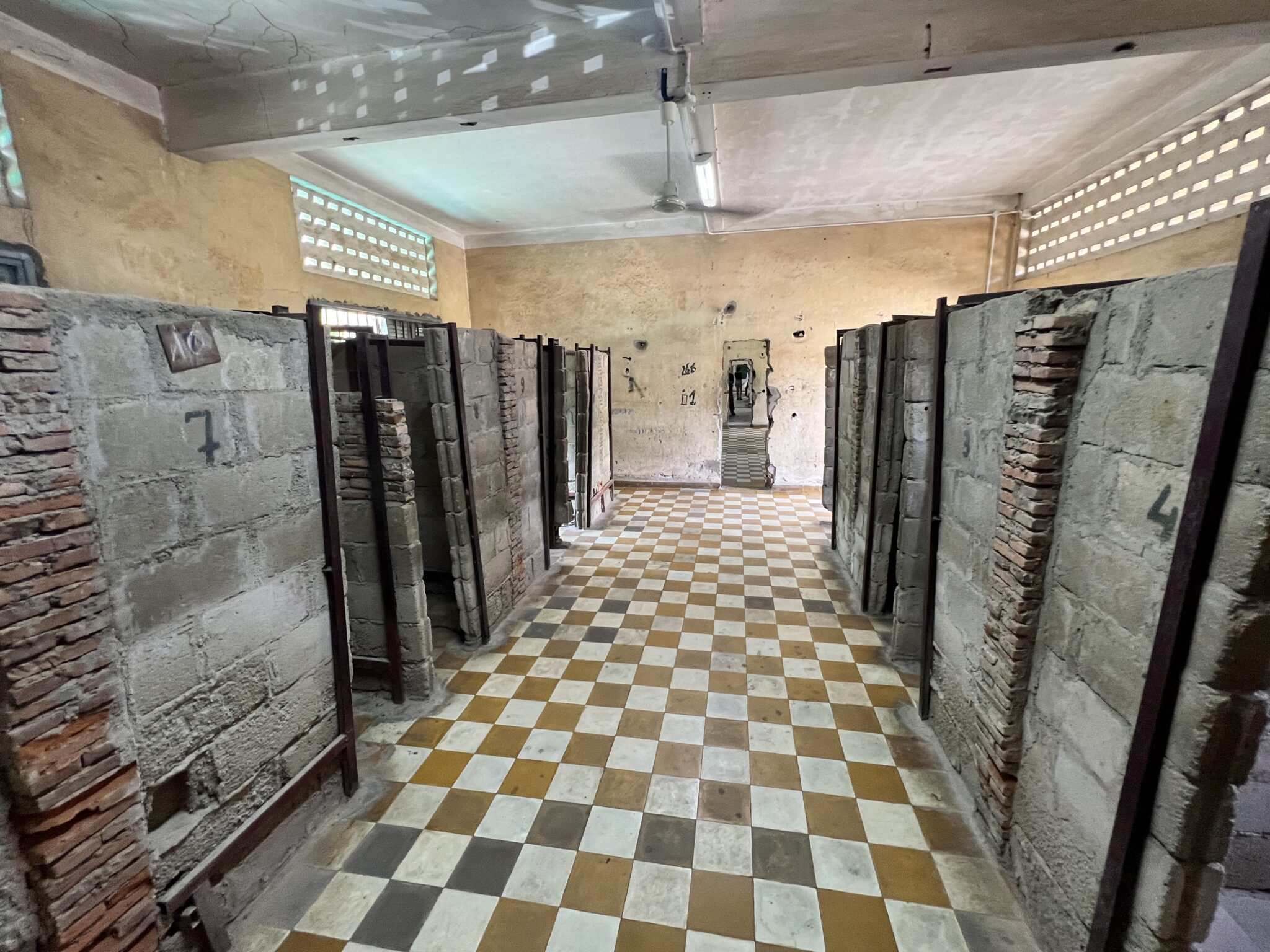 Străzile din jurul fostei închisori sunt, astăzi, într-un freamăt continuu, cu tuk-tuk-uri asurzitoare, zeci de turiști și vânzători stradali pe fiecare trotuar. Doar zidurile înalte, cu sârmă ghimpată, te pun în temă despre locul în fața căruia te afli. Dincolo de zidurile groase ale curții interioare, viața agitată a cambodgienilor curge cu același vacarm și arome de mâncare stradală.