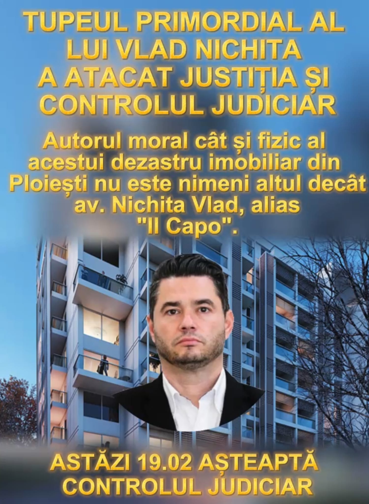 Vlad Nichita, alias „Il Capo,” este văzut ca fiind principalul responsabil pentru haosul din sectorul imobiliar din Ploiești. Acesta continuă să se afișeze cu opulență, ignorând numeroasele pagube suferite de cei afectați de afacerile sale.