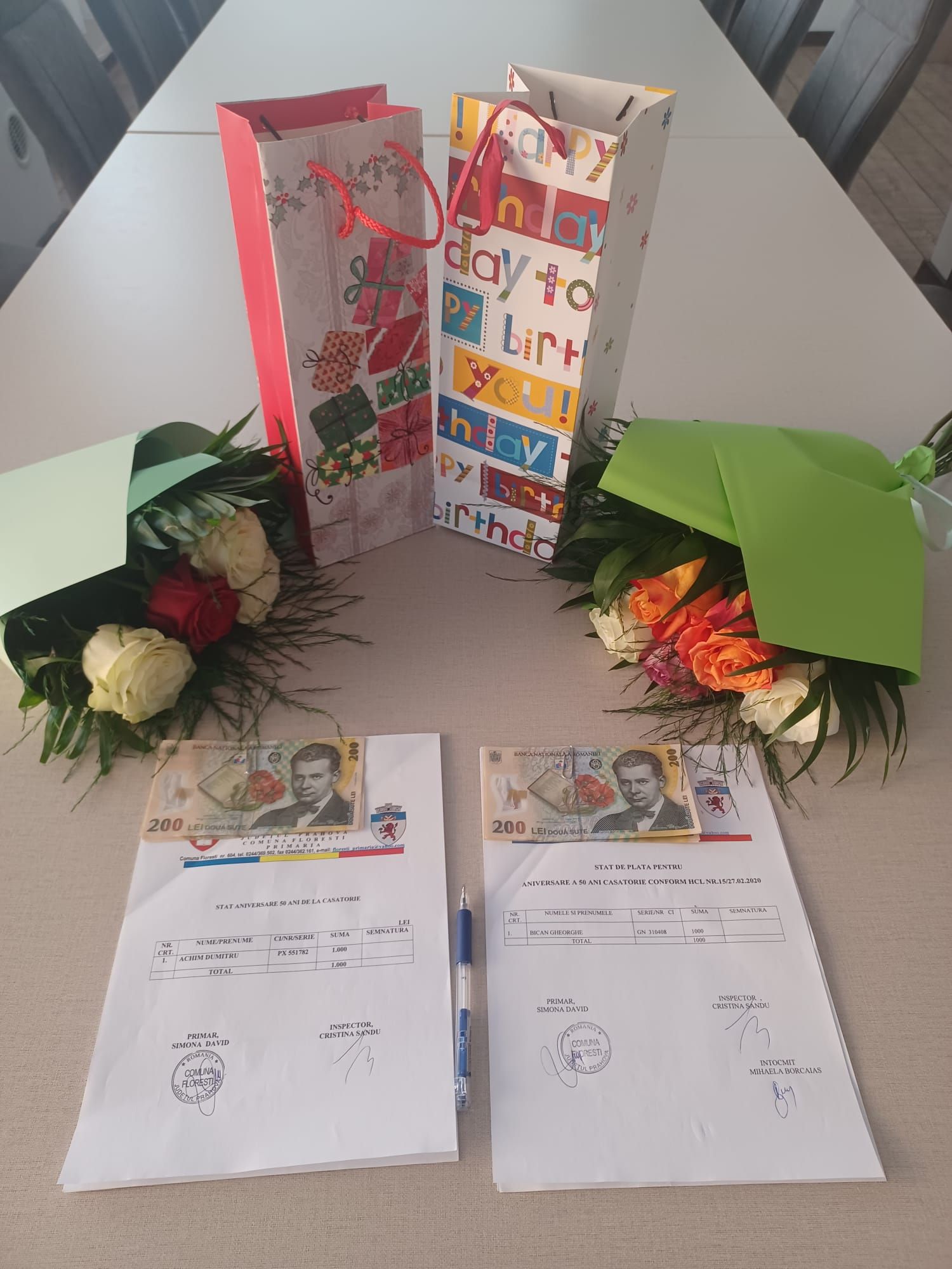 Cu această ocazie specială, Primăria Florești le-a oferit premii simbolice și le-a adresat cele mai calde felicitări pentru cei 50 de ani de căsnicie.