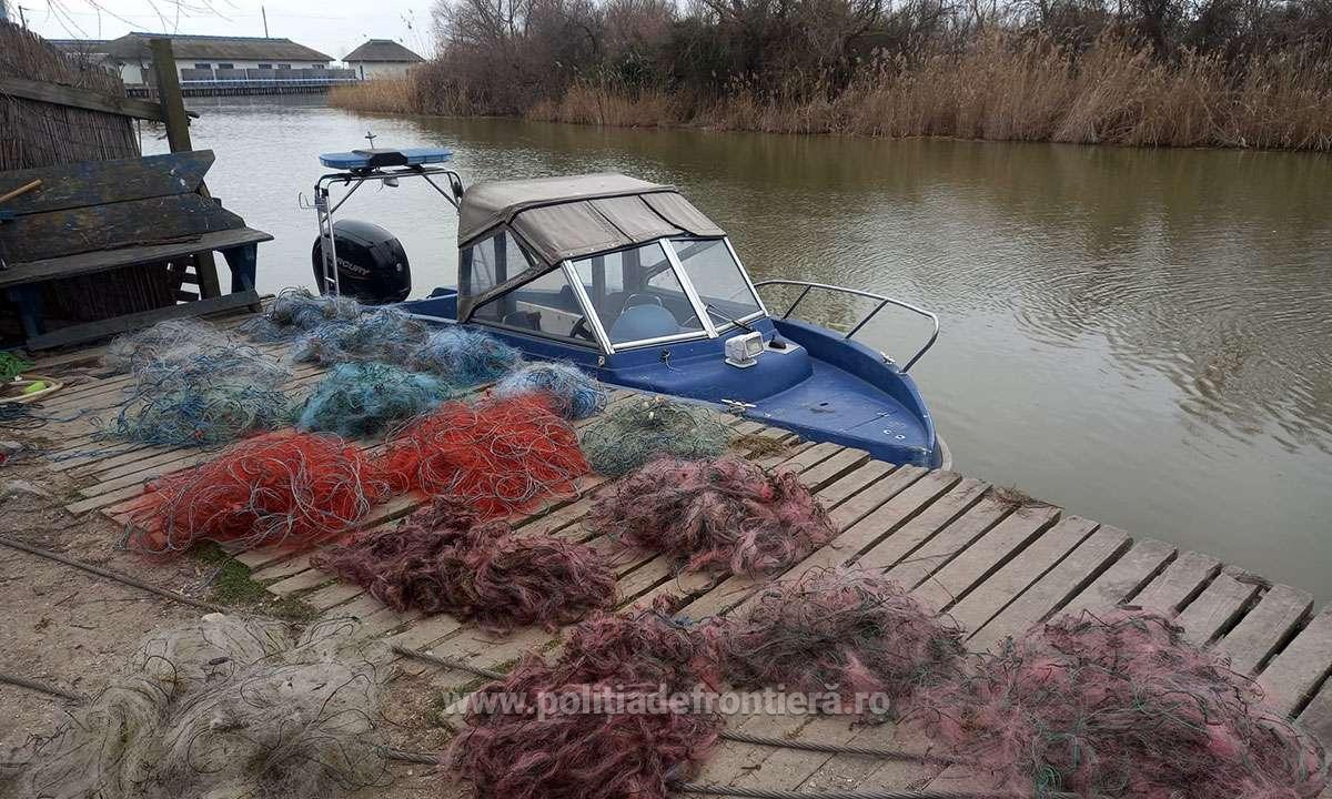 Grupul de Nave Sulina al Poliției de Frontieră confiscă 730 de metri de plase braconiere cu 177 kg de pește