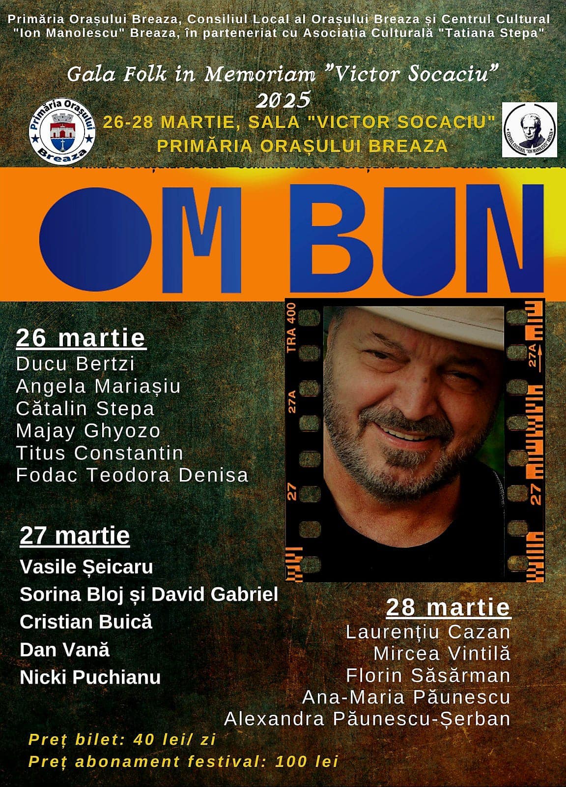 Primarul orașului Breaza, Bogdan Novac, anunță cu mândrie organizarea celei de-a cincea ediții a Festivalului de Folk „Om Bun”, fondat de regretatul artist Victor Socaciu. Festivalul, deja o tradiție pentru Breaza, s-a bucurat de un succes remarcabil în fiecare an, cu săli pline la fiecare spectacol.