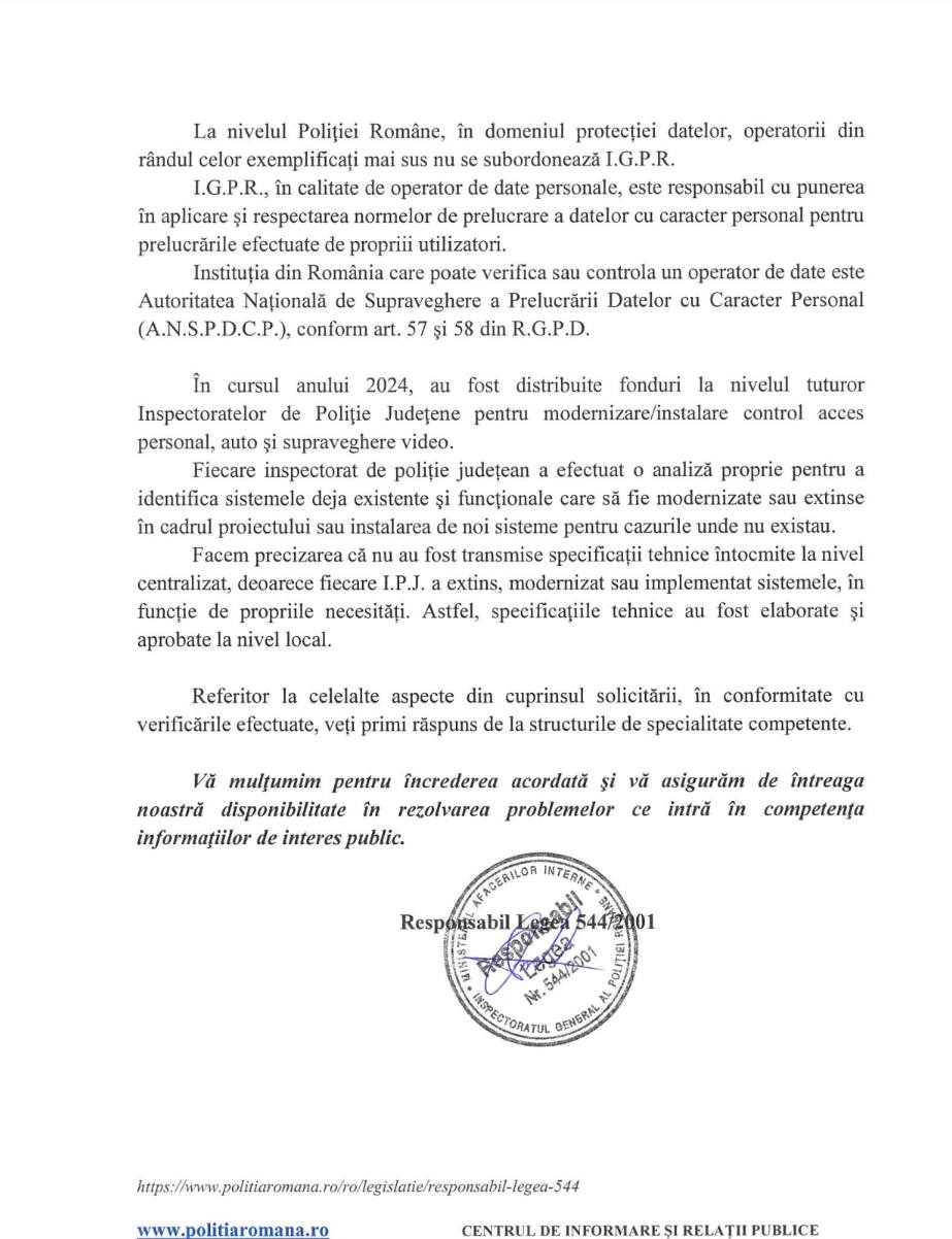 - Confirmarea cunoștinței conducerii MAI și IGPR despre înregistrările audio ambientale la IPJ Botoșani și, în caz afirmativ, temeiul legal al acestora.