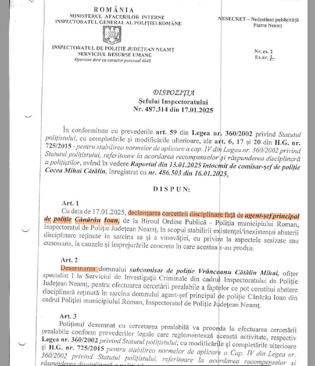 Emil Pășcuț, reprezentant al Sindicatului Diamantul, a făcut publice informații cruciale despre structura unui act administrativ de declanșare a cercetării disciplinare, subliniind importanța respectării standardelor legale. Sindicatul critică modul în care Inspectoratul de Poliție Județean (IPJ) Neamț a gestionat cercetarea disciplinară în cazul Vitalie Josanu.