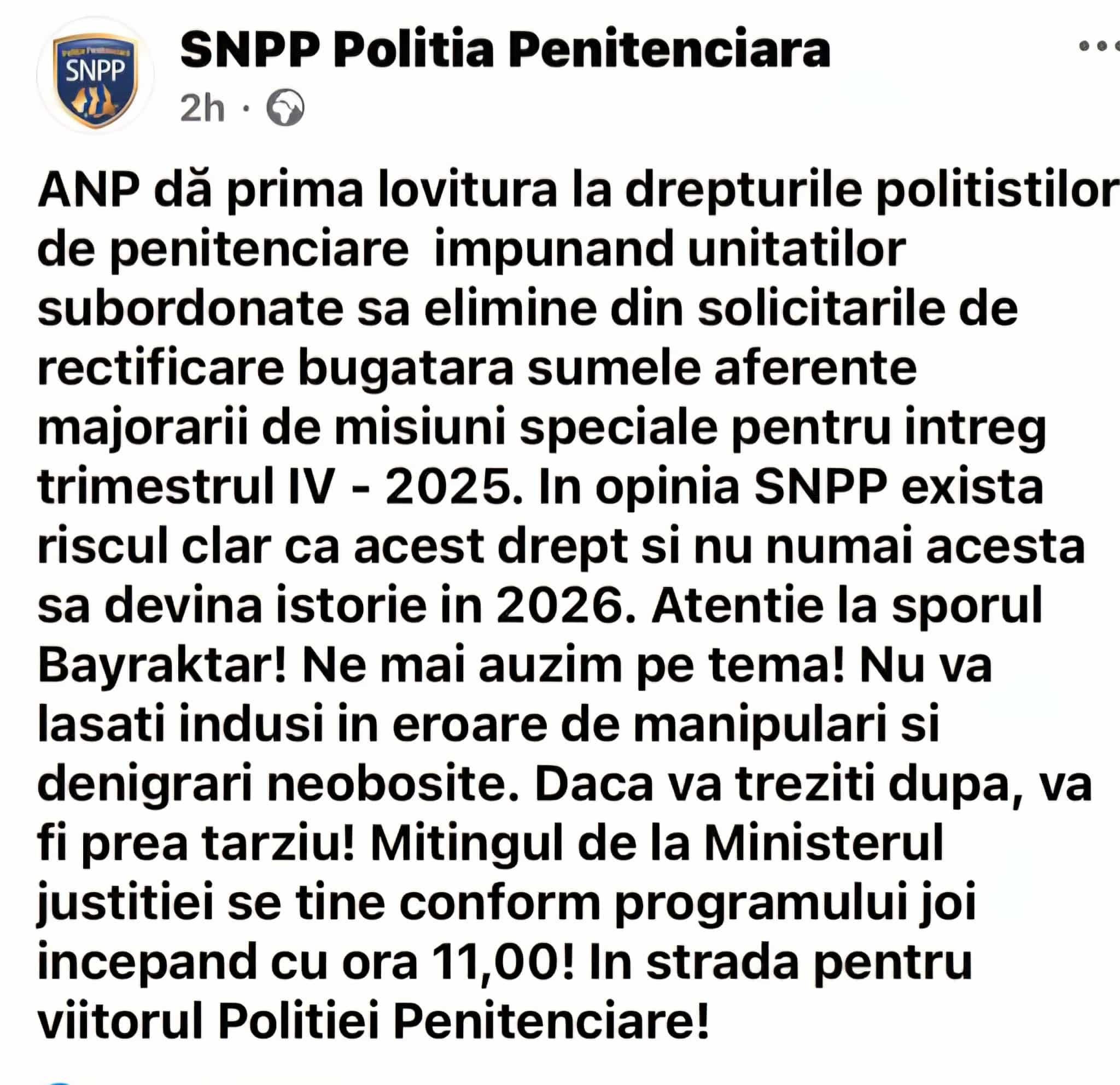 • Majorarea de 50%, un miraj electoral: ANP nu a sistat plata majorării de 50% pentru orele suplimentare, iar plata se va efectua în ianuarie 2026. Minciunile SNPP sunt demontate cu o simplitate dezarmantă.