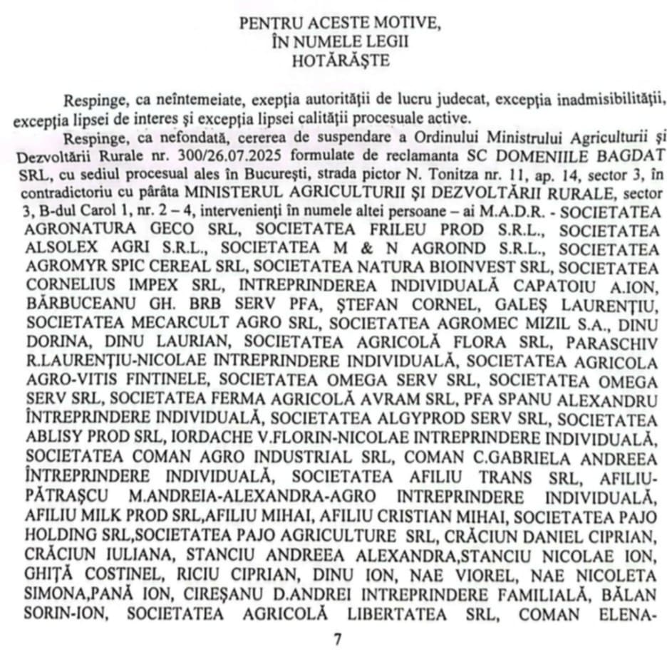 Prin hotărârea nr. 216/2025, Curtea de Apel Galați a respins cererea de suspendare a Ordinului 300/2024 al Ministerului Agriculturii, prin care se oprește temporar funcționarea sistemului anti-grindină în județul Prahova. Într-o revoluție juridică care va răscoli România agricolă, Curtea de Apel Galați a transformat practic plângerile fermierilor într-un act de dreptate fără precedent. După luni de luptă împotriva unui sistem corupt și ineficient, agricultorii din Prahova au zdrobit în instanță mașinațiunea rachetelor anti-grindină! Iată cum a căzut zidul minciunilor: