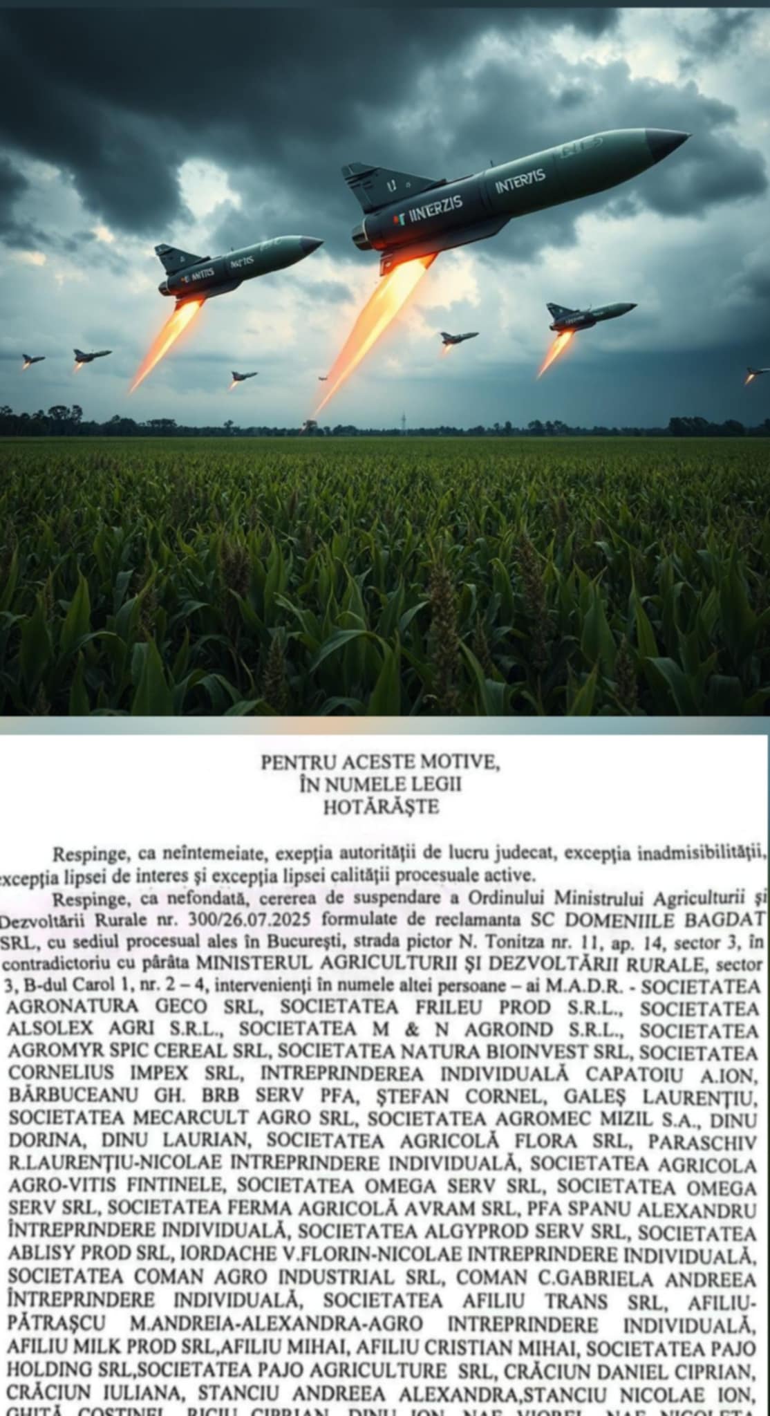 • Listele cu sânge și sudoare: Semnături depuse la tribunal, dovedind că aproape toți agricultorii din Prahova cer sistarea criminală a rachetelor.