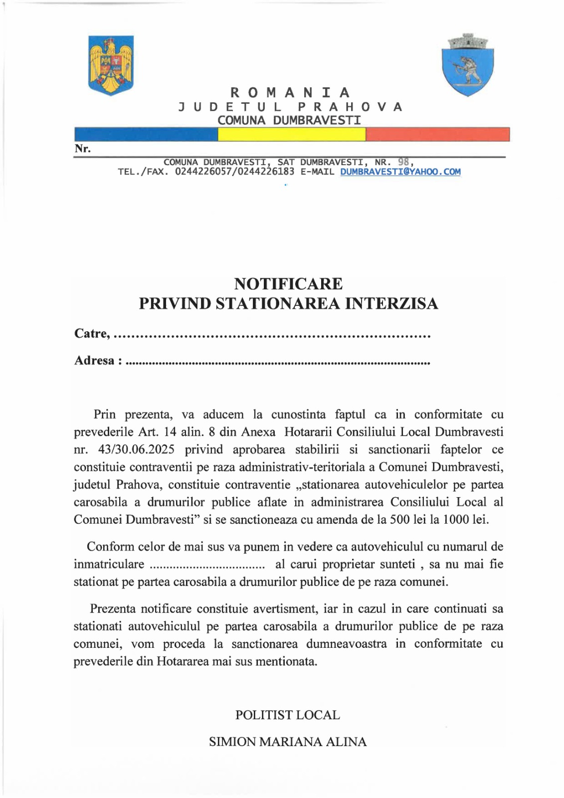 Atenție, șoferi din Dumbrăvești! Amenzi pentru staționarea neregulamentară pe drumurile publice