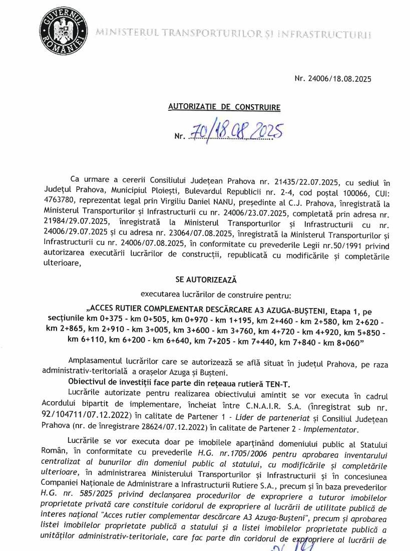VEȘTI BUNE pentru Valea Prahovei: Se dă STARTUL Centurii Ocolitoare Azuga-Bușteni!