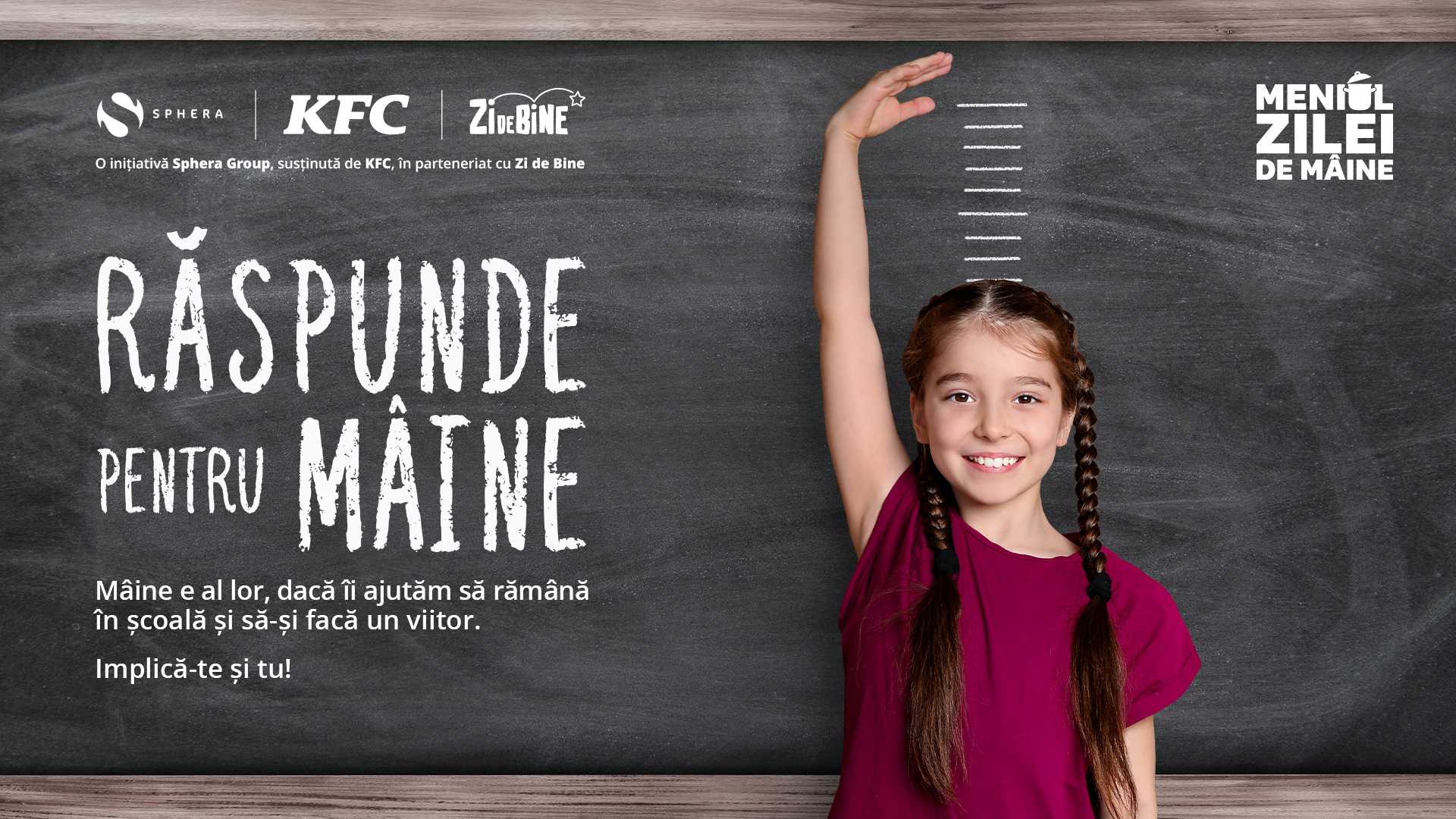 București, 10 septembrie 2025 – Sphera Franchise Group, alături de KFC România și în parteneriat cu Asociația ZI de BINE, susține 50 de elevi din cartierul Ferentari să-și continue studiile, prin platforma „Meniul Zilei de Mâine”, inițiativa Grupului de sprijinire a persoanelor vulnerabile.