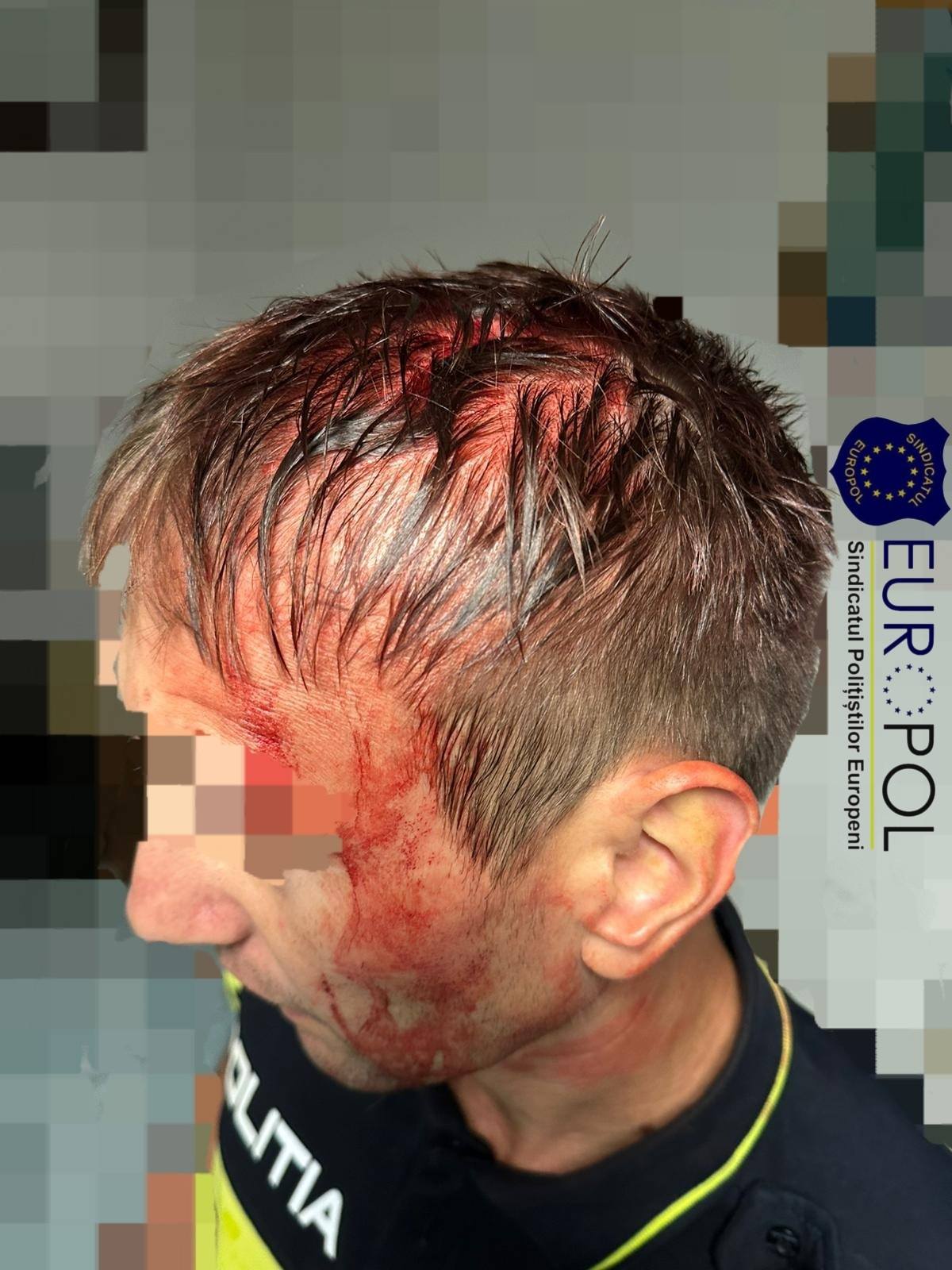 Un polițist rănit la cap, luneta mașinii de patrulare spartă