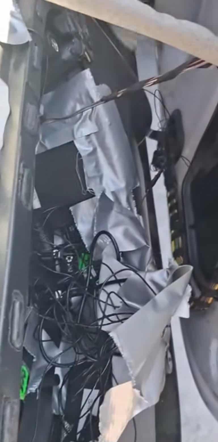 Nu mică le-a fost mirarea când au descoperit că, în interiorul uneia dintre portiere, era montat un sistem audio-video improvizat, care a generat defecțiunea și a creat un risc iminent de scurtcircuit.