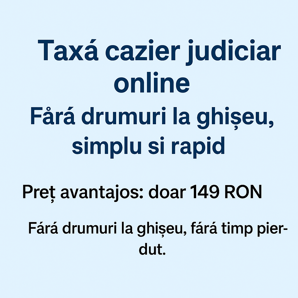 Plata taxei pentru cazierul judiciar online este cea mai comodă și rapidă metodă de a obține documentul, fără cozi și fără programări. Procesul este sigur, legal și mult mai eficient decât varianta clasică.