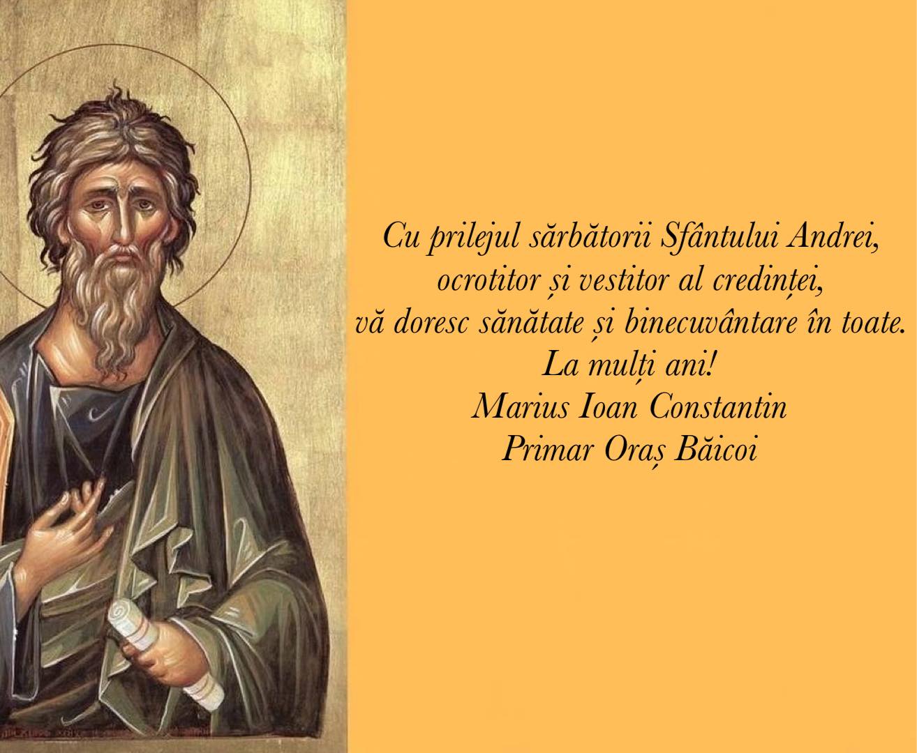 Într-o perioadă în care unitatea și credința sunt piloni esențiali ai comunității, primarul Marius Ioan Constantin a ținut să marcheze această zi de mare însemnătate în calendarul ortodox. În declarația sa oficială, edilul a subliniat dubla semnificație a sărbătorii, evocându-l pe Sfântul Andrei nu doar ca pe un reper istoric, ci și ca pe un simbol viu al identității noastre, numindu-l „ocrotitor și vestitor al credinței”.
