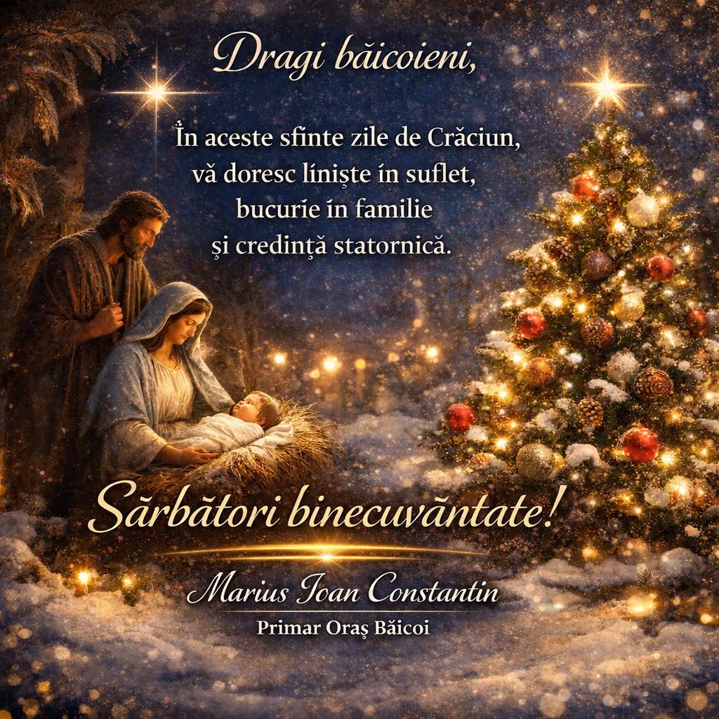 Sărbători luminoase la Băicoi: Primarul Marius Ioan Constantin, un apel la liniște și credință pentru comunitate