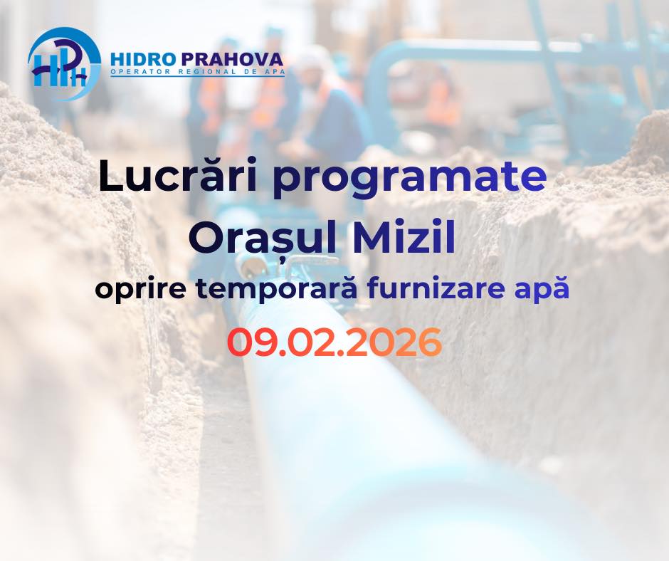 Locuitorii orașului Mizil, în special cei din zonele Cartier și Fefelei, se pregătesc pentru o întrerupere temporară a furnizării apei potabile, programată pentru ziua de luni, 09 februarie 2026. Decizia, comunicată de HIDRO PRAHOVA S.A., vizează lucrări esențiale de cuplare a abonaților la o conductă nou executată, parte a unui amplu proiect de modernizare a rețelei de apă.