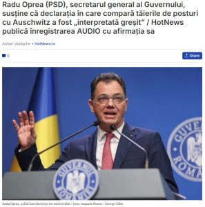 În concluzie, episodul „Oprea la Auschwitz” nu e doar o simplă gafă de politician obosit sau neinspirat. Este un simptom al unei boli mai profunde a clasei politice românești: ignoranța istorică, cinismul în fața suferinței umane și, mai ales, lipsa de asumare. Când un demnitar de rang înalt își permite să relativizeze Holocaustul pentru a-și acoperi inerția sau pentru a eluda responsabilitatea, nu mai e vorba de o simplă eroare, ci de o pată pe obrazul întregii națiuni. Muraru are dreptate: „fiecare minut în plus pe funcție încurajează relativizarea Holocaustului”. Iar dacă Radu Oprea chiar crede că „oamenii nu sunt costuri”, ar putea începe prin a nu mai costa bugetul statului, pe care îl blochează cu bună știință. Demisia ar fi, în acest caz, nu doar o reparație morală, ci și o eficientizare bugetară. O singură întrebare rămâne: va avea PSD-ul curajul să facă curățenie, sau va prefera să-l păstreze pe „istoricul” Oprea, riscând o rușine internațională de proporții? (Cerasela N.).