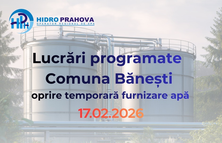 Locuitorii satului Urleta, parte a comunei Bănești, se pregătesc pentru o întrerupere temporară a furnizării apei potabile. HIDRO PRAHOVA S.A. a anunțat că mâine, 17 februarie 2026, între orele 08:00 și 13:00, alimentarea cu apă va fi sistată pentru a permite realizarea unor lucrări esențiale de cuplare a noii instalații hidromecanice la Stația de Pompare Urleta.