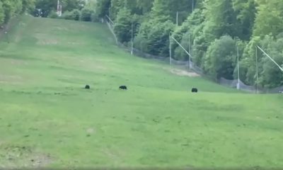 La plimbare prin stațiunea Șugaș Băi. Patru urși sunt vedetele unui filmuleț care a devenit viral pe Internet. Ei se plimbă pe una dintre pârtiile de...