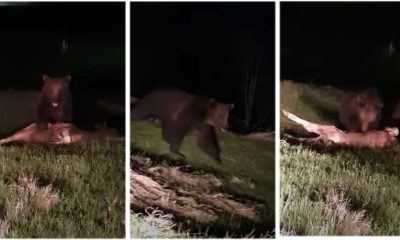Un bărbat din județul Suceava a surprins un urs în timp ce îi mânca un vițel. Proprietarul animalului susține că ursul nu părea deloc speriat de...