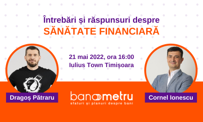 Echipa programului gratuit de sănătate financiară Banometru, alături de Dragoș Pătraru, Starea Nației, își anunță prezența în Timișoara, la Iulius Town, pe 20 și 21...