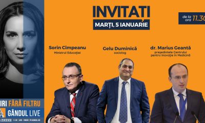 GÂNDUL LIVE. Ministrul Educației, Sorin Cîmpeanu, și sociologul Gelu Duminică, printre invitații Emmei Zeicescu la ediția GÂNDUL LIVE de marți, 5 ianuarie 2021, de la ora...