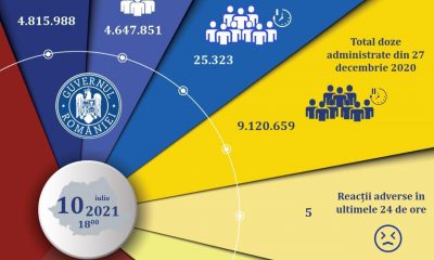 În ultimele 24 de ore au fost administrate 25.323 de doze de vaccin, dintre care 14.735 ca prima doză și 10.588 ca doza a IIa, a...