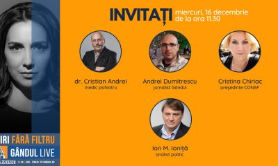 Analistul politic Ion M. Ioniță se află printre invitații Emmei Zeicescu la ediția GÂNDUL LIVE de miercuri, 16 decembrie 2020, de la ora 11.30. Printre invitați...