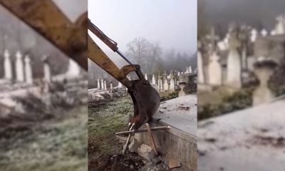 Scene șocante într-o localitate din Olt unde preotul dărâmă cu excavatorul un mormânt construit ilegal, în timp ce proprietara țipă disperată în încercarea de a-l face...