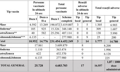 Comitetul Național de Coordonare a Activităților privind Vaccinarea împotriva COVID-19 (CNCAV) transmite vineri că în utlimele 24 de ore s-au vaccinat 25.728 de persoane. Dintre acestea,...
