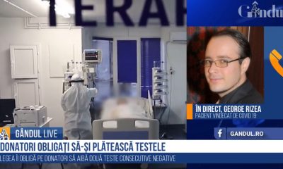 George Rizea, un tânăr vindecat de coronavirus, care vrea să îi ajute pe cei suferinzi de aceeași infecție, prin donarea de plasmă, a vorbit, la GÂNDUL...