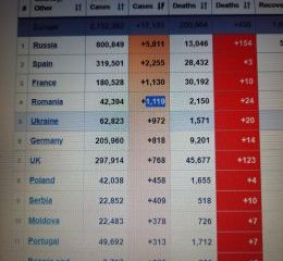 Potrivit datelor furnizate de worldometers.info, țara noastră se clasa vineri pe locul al patrulea în Europa la numărul cazurilor noi de Covid-19, după Rusia, Spania și...