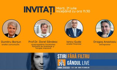 Antreprenorul Dragoș Anastasiu și Dumitru Borțun, specialist în comunicare, se află printre invitații Emmei Zeicescu la ediția Gândul LIVE de marți, 21 iulie, de la ora...